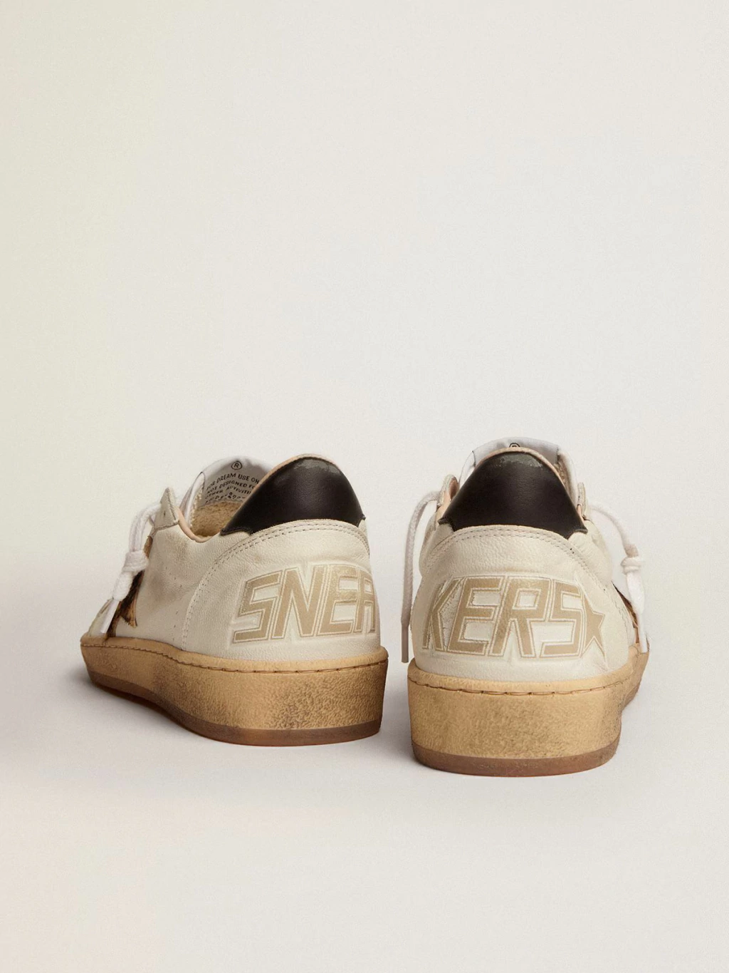 Soñando con los ochenta. Nuestras zapatillas Ball Star tienen un aire universitario americano, una mezcla entre un tiro a canasta y un paseo en patineta. Esta versión, con parte superior de napa blanca, presenta una estrella de piel de poni con estampado de leopardo en tonos beige y marrón, refuerzo del talón de cuero negro y puntera de ante gris hielo. La inscripción negra en contraste "Never Stop Dreaming" en la suela y los cordones blancos le dan el toque final: cosas hermosas que nunca pasan de moda.