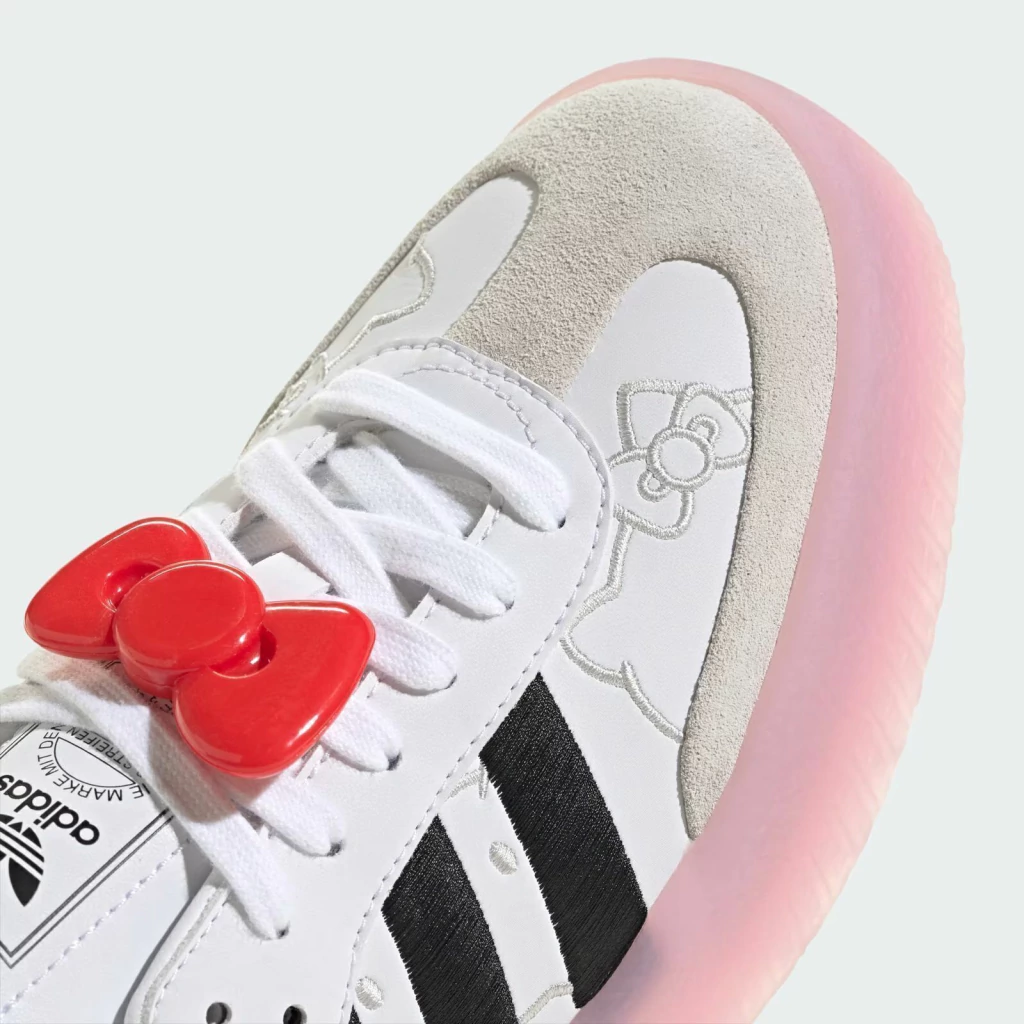 Diseñadas tanto para fans de Hello Kitty como para amantes de las zapatillas, estas zapatillas adidas Sambae son la manera perfecta de mostrar tu lado más divertido. Con detalles bordados de Hello Kitty en la parte superior de cuero suave y tela, el par se completa con una colorida silueta de Hello Kitty en la plantilla. La suela de goma rosa y el cierre de cordones de Hello Kitty le dan un toque divertido al diseño.
